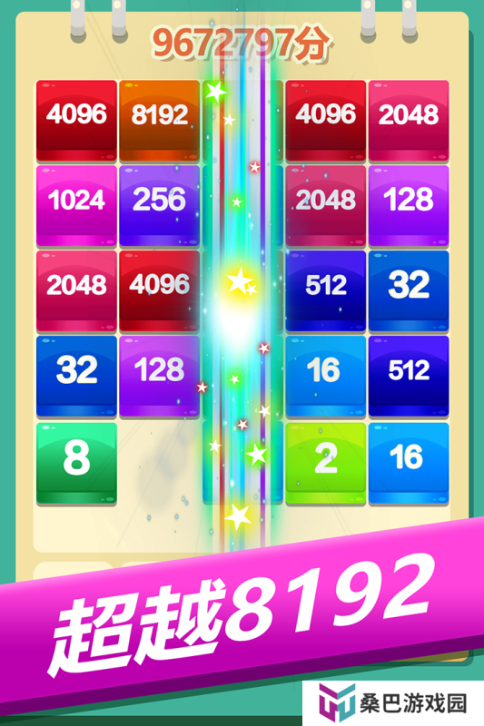 数字合成的基础上融入消除机制,使策略性与趣味性并存。相同数字的方块相连后自动合并,数值翻倍的瞬间,棋盘布局随之改变,每一步都牵动全局。合理规划方块的落点,控制数字增长节奏,是取得高分的关键。色彩渐变的设计使数字递增的过程更具层次感,消除时的动画反馈流畅,增强视觉冲击。