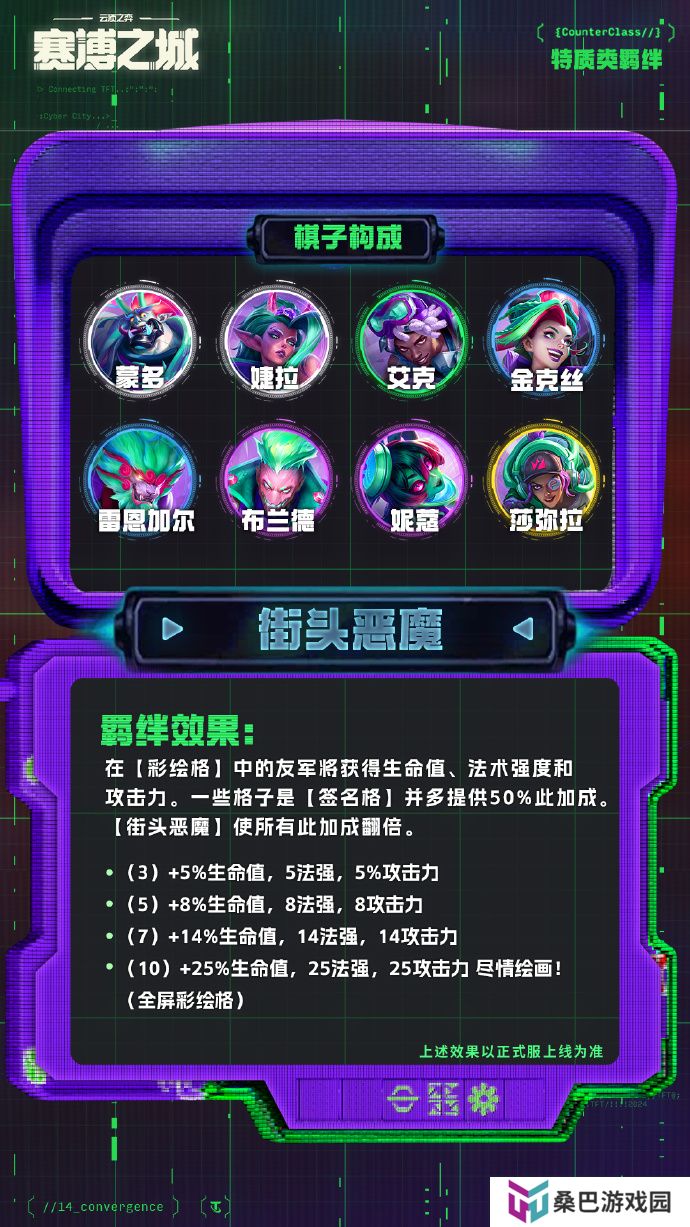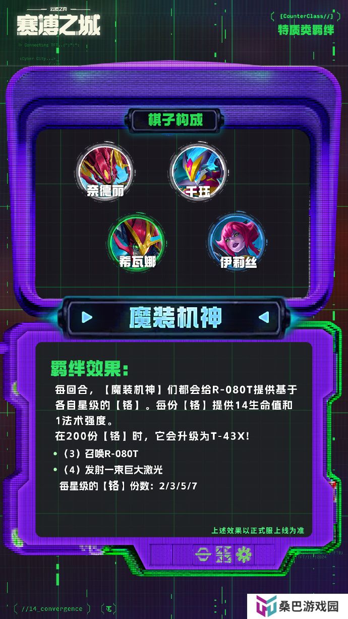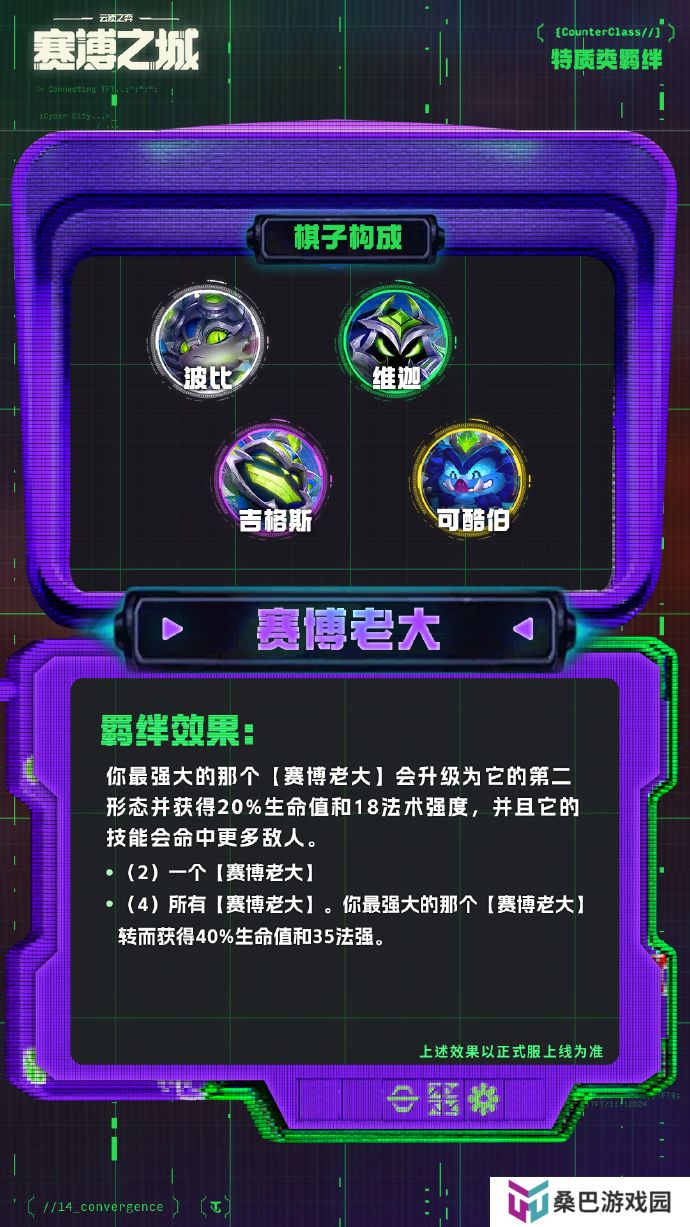 ·(4)所有【赛博老大】。你最强大的那个【赛博老大】转而获得40%生命值和35法强。