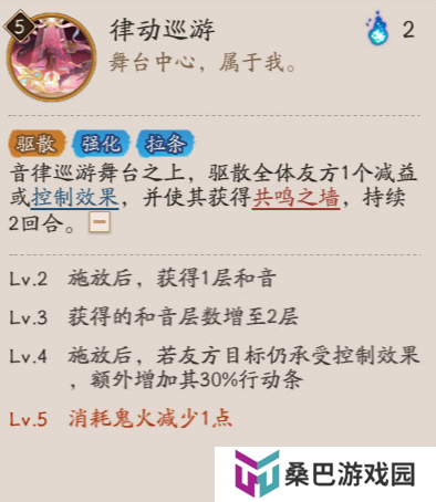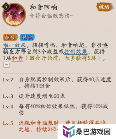Lv.5 消耗和音驱散时,使目标获得共鸣之墙,持续2回合。