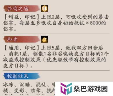 唯一效果。轻轻哼唱,和音响起,非召唤物友方每受到3个减益或控制效果,获得1层和音(回合开始前,至多获得5层)。