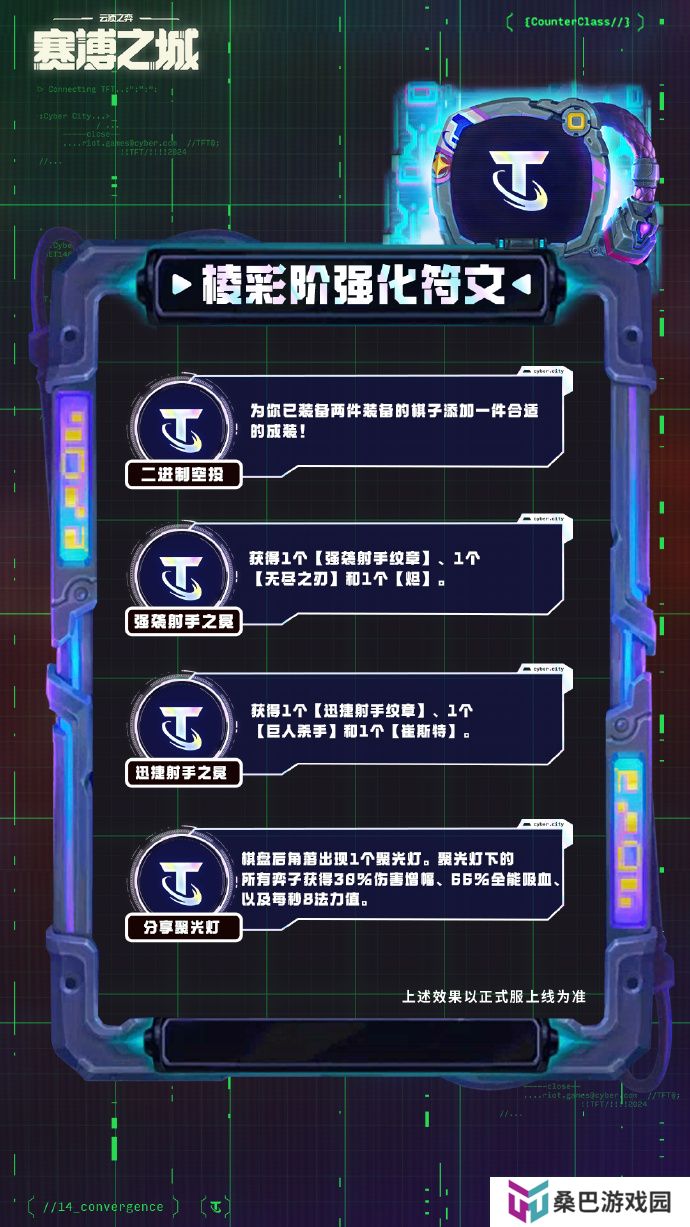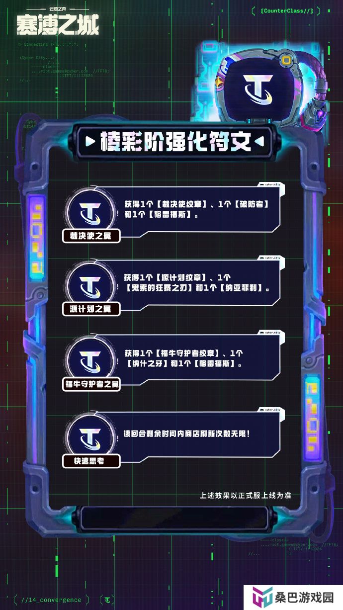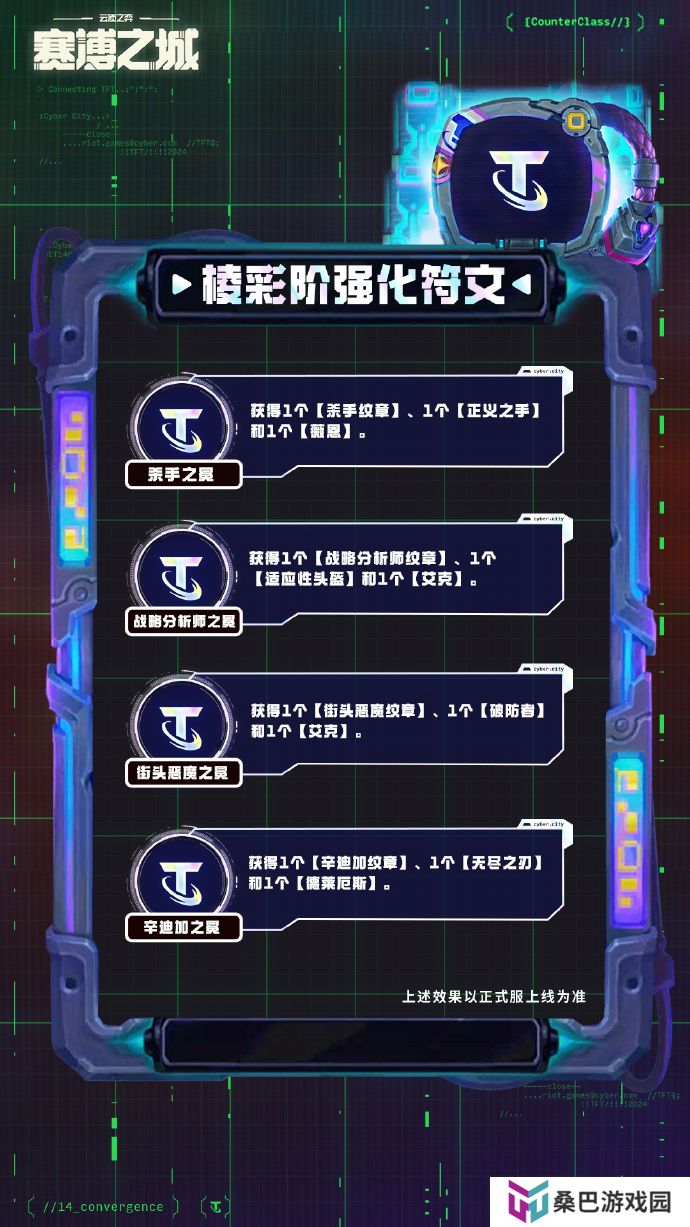 云顶之弈即将迎来S14赛季赛博之城,在这个赛季将会上线全新的棱彩阶强化符文,那么大家知道棱彩阶强化符文究竟是怎么样的呢?下面快跟随本站小编为大家带来的云顶之弈S14棱彩阶强化符文吧。