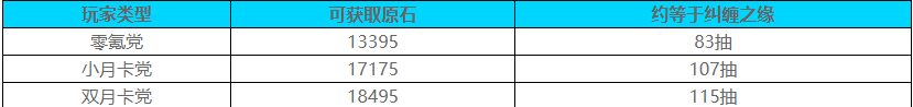 3、小月卡党与双月卡党多出的原石,主要来源于「空月祝福」,每日90原石,长期稳定。